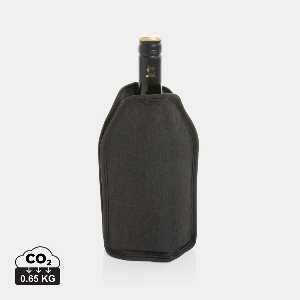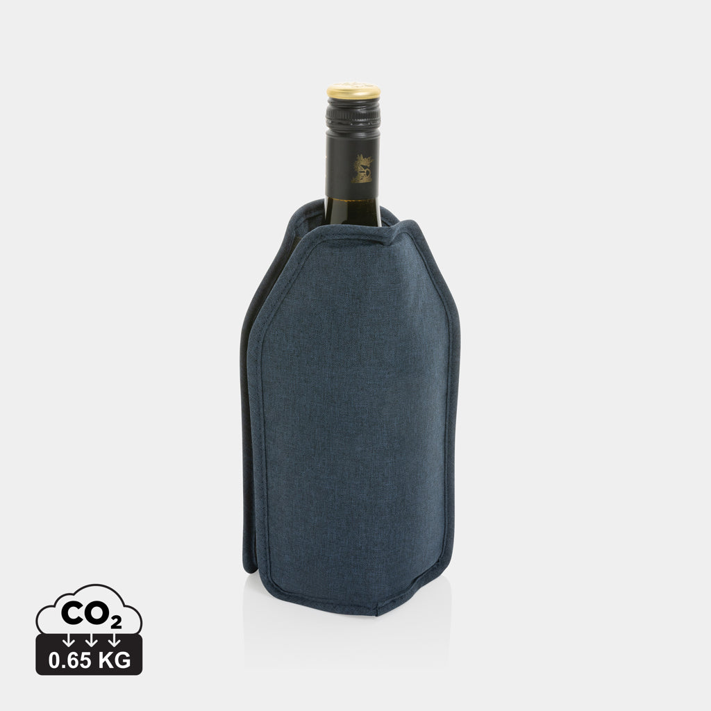 Fascia refrigerante ecologica in rPet Aware realizzata con materiale sostenibile e consapevole dell'ambiente. Progettata per mantenere il vino e lo spumante alla temperatura ideale, grazie al gel a raffreddamento rapido che agisce in pochi minuti e garantisce ore di freschezza. La struttura elastica si adatta perfettamente a qualsiasi bottiglia, assicurando una tenuta uniforme. Disponibile nei colori nero, blu navy e grigio per adattarsi a ogni esigenza estetica. Utilizzo semplice: riponi la fascia in congelatore per circa 2 ore, quindi inserisci la bottiglia per mantenerla al fresco. Riutilizzabile infinite volte, basta conservarla in freezer tra un utilizzo e l'altro. Personalizzabile con il tuo logo aziendale, rappresenta la scelta ideale per eventi aziendali, attività vinicole e promozioni del brand. Una soluzione pratica e raffinata per chi apprezza il vino servito alla giusta temperatura.