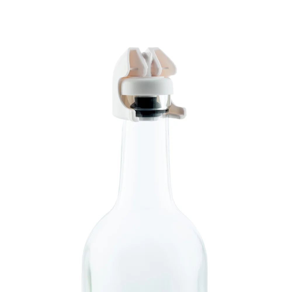 Ideale sia per vino che per champagne. La forma della bottiglia non è rilevante: se il collo corrisponde a quello di una bottiglia standard di champagne o spumante da 750 ml, questo tappo si adatterà senza problemi. Resiste fino a 6 atm, ha una guarnizione autoregolante e una progettazione di alta qualità. A differenza delle pompe a vuoto, che alterano il sapore delle bollicine, questo tappo mantiene la CO2 nel liquido, garantendo effervescenza fino all'ultima goccia.